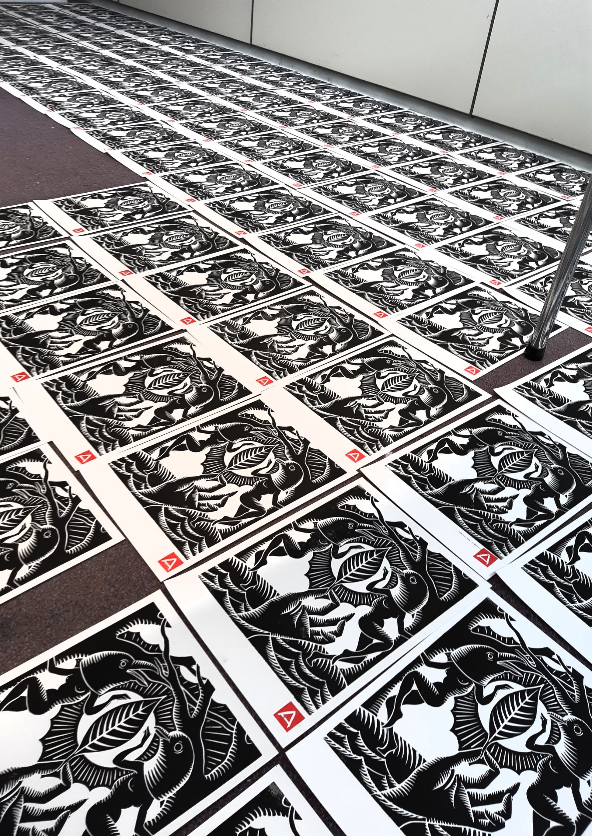 Sometimes you have to break a promise. Like when beautiful linocut prints by Anne Caesar van Wieren of Karawane (including accompanying soundtrack) are gathering dust in the Excelsior depot. This linocut print and music is especially for our Supporters mission of the month of June designed and printed. It was promised to send this exclusively to the Excelsior Supporters. But there are still 30 left. Terrible waste and too beautiful to keep in our vault. We have decided, in consultation with the designer/composer , to offer them for a song in our webshop. 30 pieces so be quick.